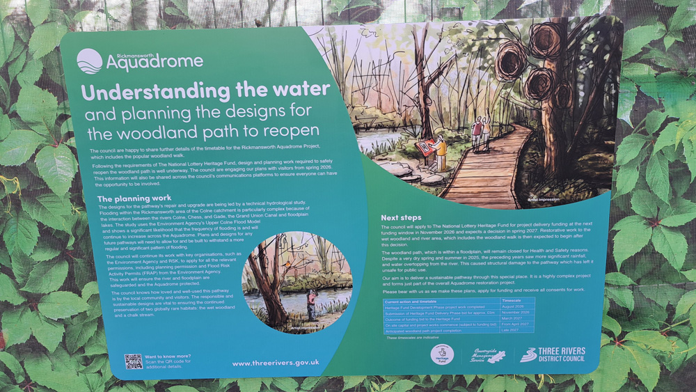 The Rickmansworth Aquadrome woodland path has been closed for over a year now, due to professional advice received by TRDC that says it is “unsafe”. There has been no evidence issued by TRDC to verify that statement.